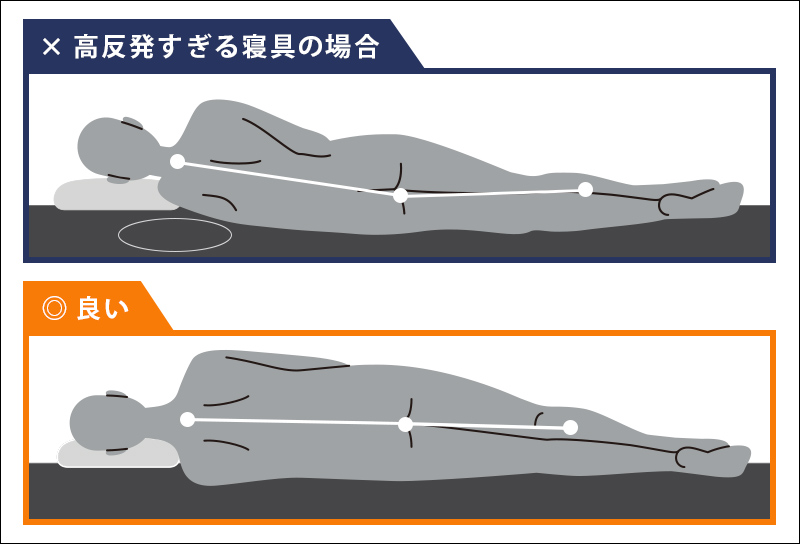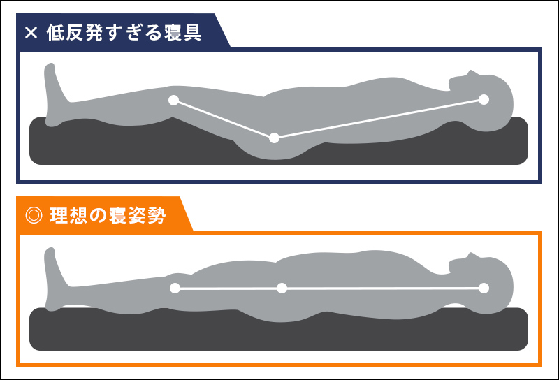 仰向けで寝る人は、腰やお尻が沈み込みすぎると背骨が曲がってしまうため、